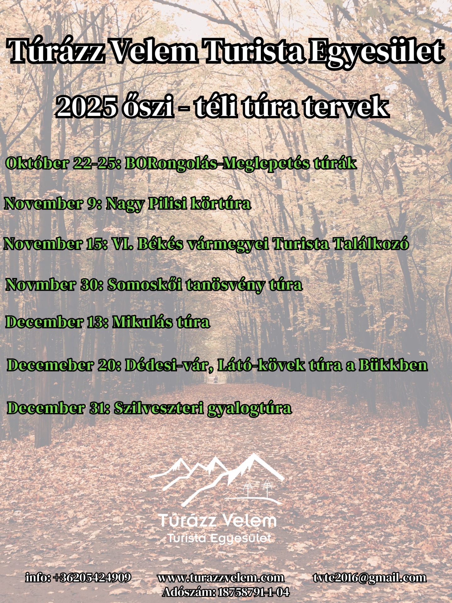 Egyesületünk 2025 őszi-téli programjait láthatjátok a plakáton. Bővebb információk az eseménynaptárban olvashatóak.